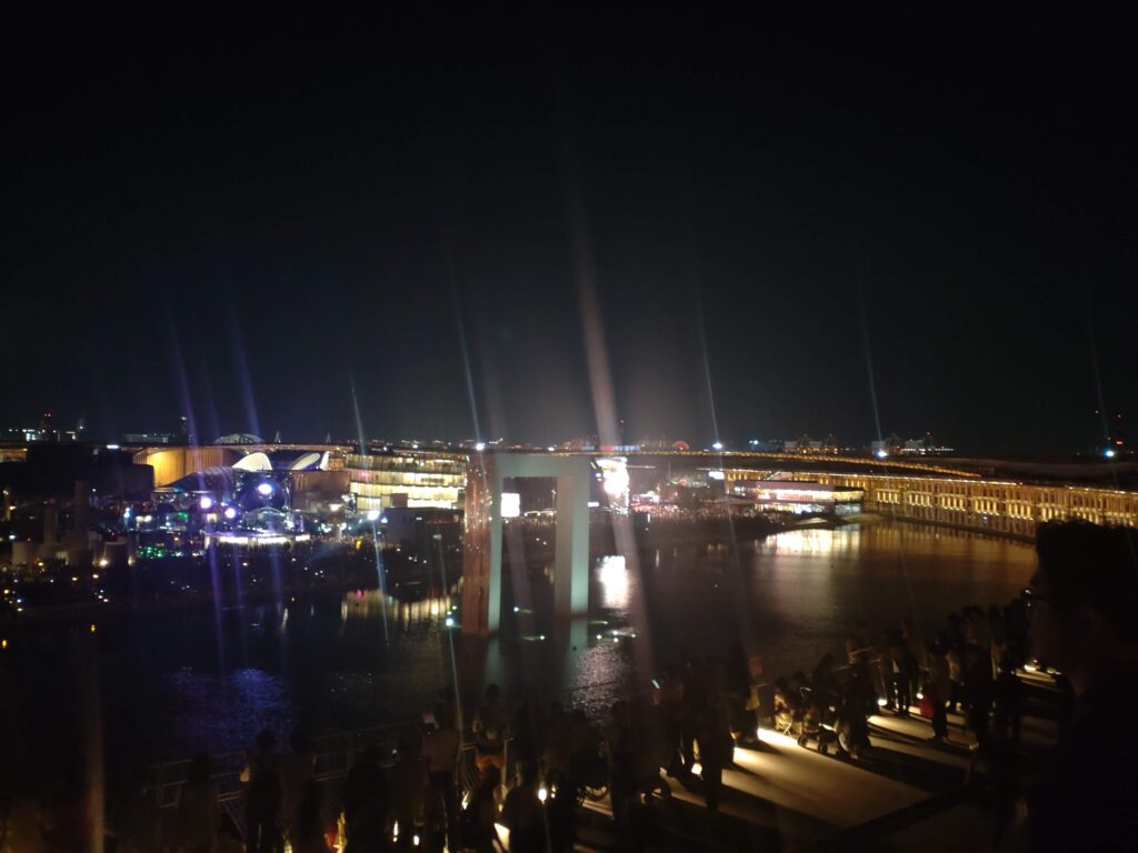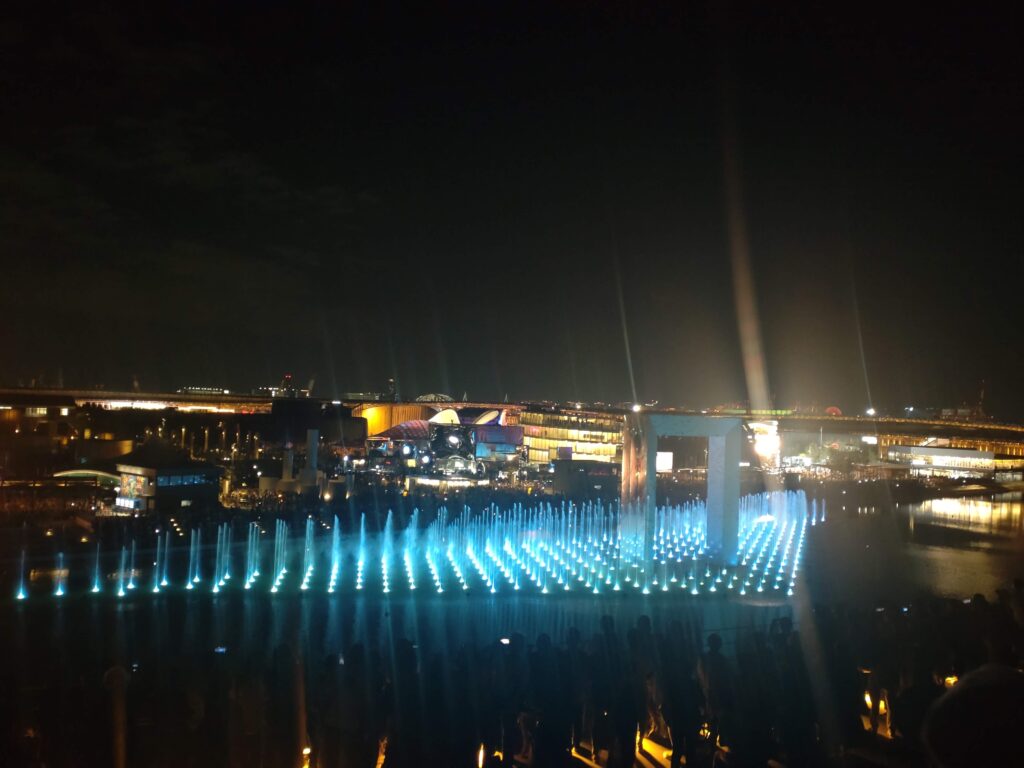 大屋根リングに上がり、噴水ショーも見ることが出来ました。花火、ドローンショーも見れました。